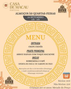 Reservas até 21/Setembro (Domingo), através do email: casademacau@mail.telepac.pt