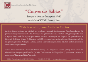 Decorrerá no dia 22 de fevereiro, pelas 17h30, a segunda sessão do ciclo “Conversas Sábias”, com a presença de António Caeiro, no auditório do CCCM.