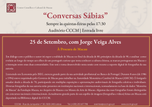 Em diálogo com o público o autor irá expor a realidade de Macau no final da década de 80, princípios da década de 90, e analisar como evoluiu ao longo do tempo aos olhos de um português curioso que tenta conhecer a cultura chinesa, as marcas portuguesas em Macau e a interação entre estas duas comunidades. Este será o tema desenvolvido nesta sessão com recurso a suporte digital de fotografias da sua autoria.